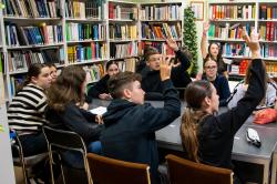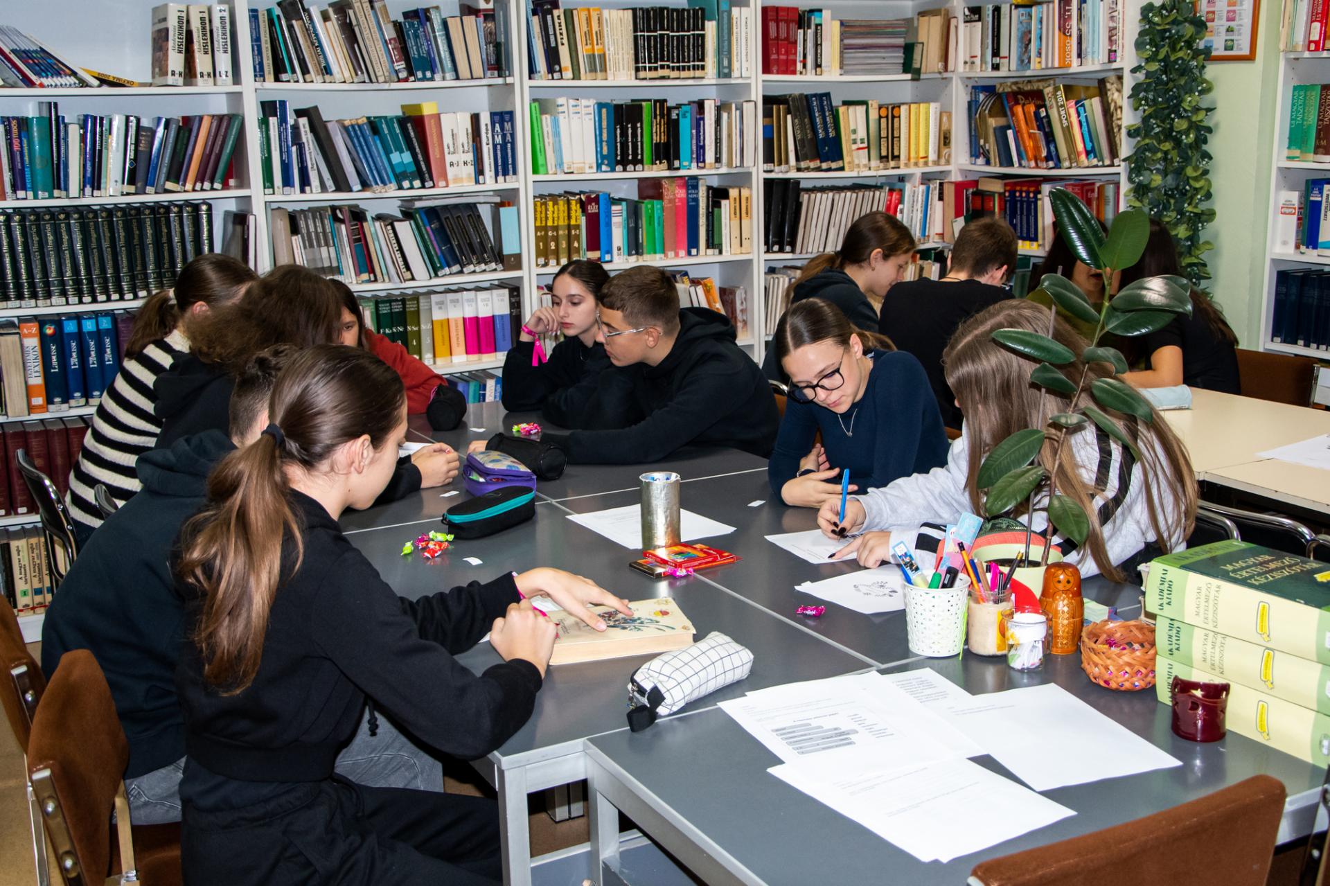 A magyar népmese napján a 8.K osztály tanulói interaktív foglalkozáson vettek rész az iskolai könyvtárban. A csoportokban tevékenykedő diákoknak hét próbát kellett kiállniuk. Az általuk készített meseillusztrációkból és az otthonról hozott mesekönyvekből pedig kiállítást rendeztünk.