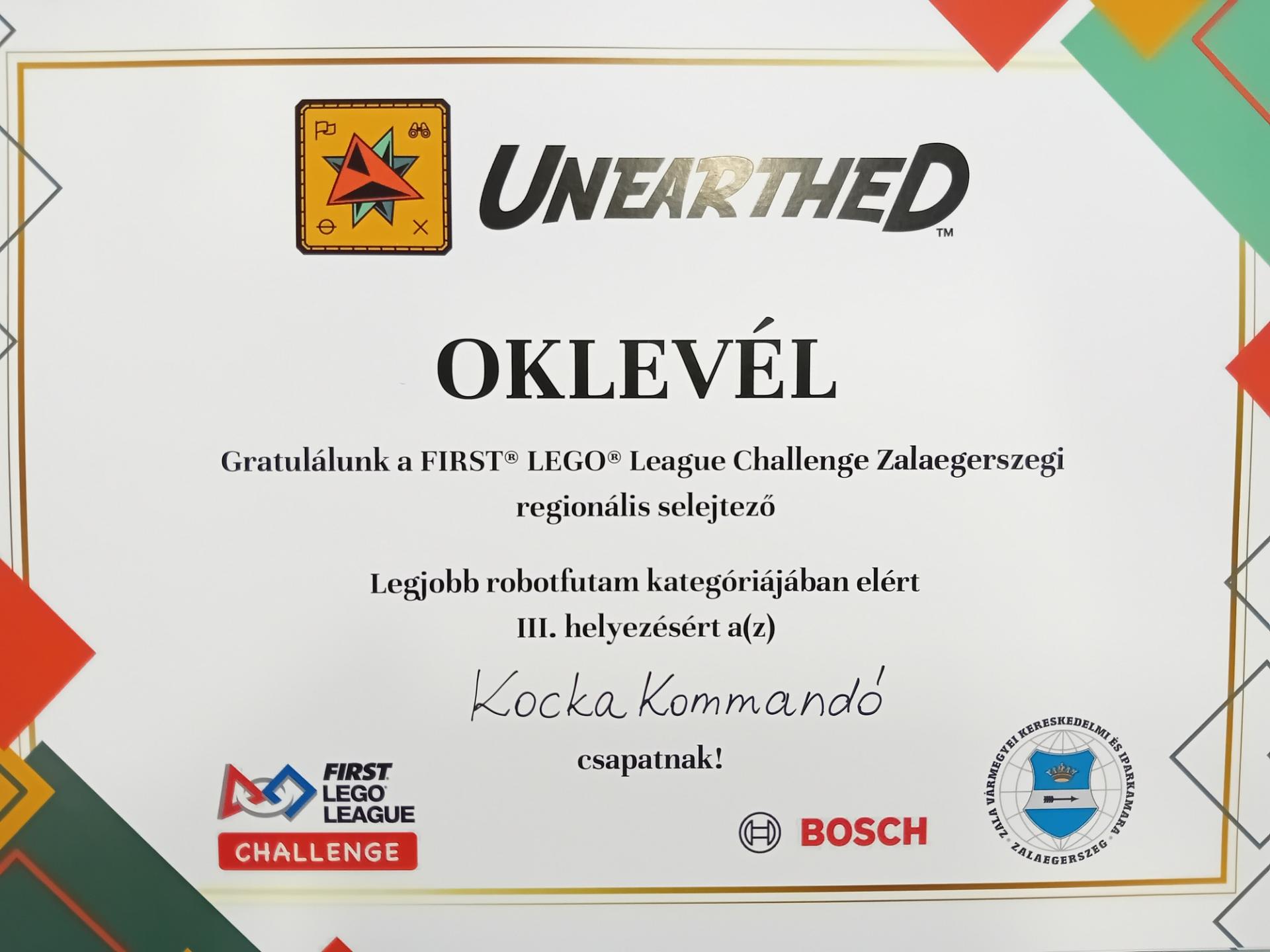 Iskolánk KockaKommandó nevű csapata 2026. január 28-án részt vett a zalaegerszegi Pannon egyetem által megszervezett First Lego League Unearthed verseny regionális selejtezőjén, ahol a döntőig jutott csapatunk a robotfutam kategóriában. Az összesített eredményeik alapján a robotfutam kategória harmadik helyezését szerezte a csapat.