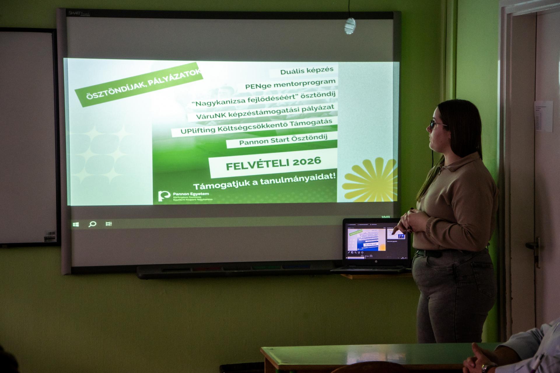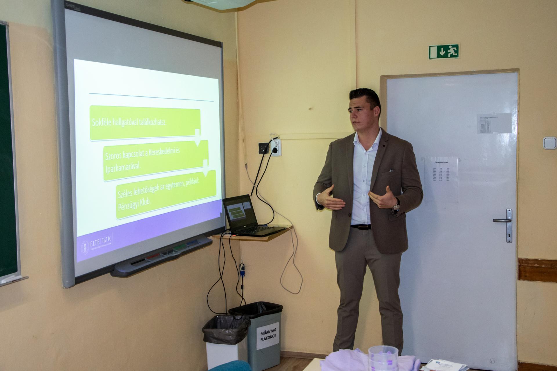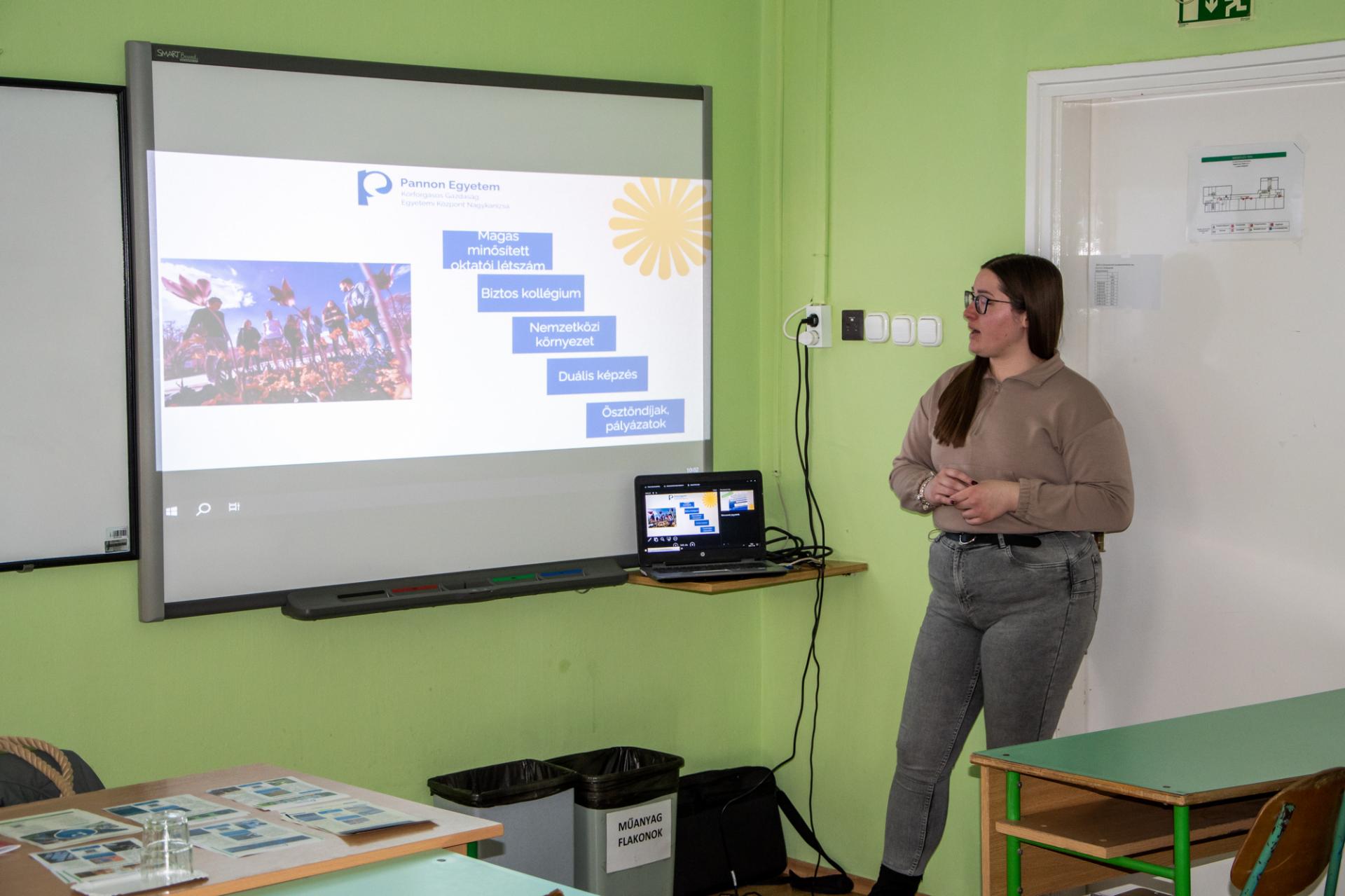 A pályaorientációs nap eseményei: A felsőoktatási intézmények közül az Eötvös Loránd Tudományegyetem (ELTE), a Magyar Agrár- és Élettudományi Egyetem (MATE) és a Pannon Egyetem Nagykanizsa (PEN) képviseltették magukat. A Zala Vármegyei Rendőr-főkapitányság (ZALA MRFK) képviselői a rendfenntartói pálya választásának lehetőségéről és feltételeiről, A Zalakarosi Fürdő értékesítési és marketing osztályának vezetője a turizmus-vendéglátás szakmáról, a Szabadics Group képviselője a karrierlehetőségekről, mérnöki pályákról, iskolánk pedagógusa a felsőfokú felvételi eljárásról tartott előadást. A Német Nemzetiségi Önkormányzat (NNÖ) tevékenységét ismerhették meg tanulóink kiállítás és kisfilm segítségével.