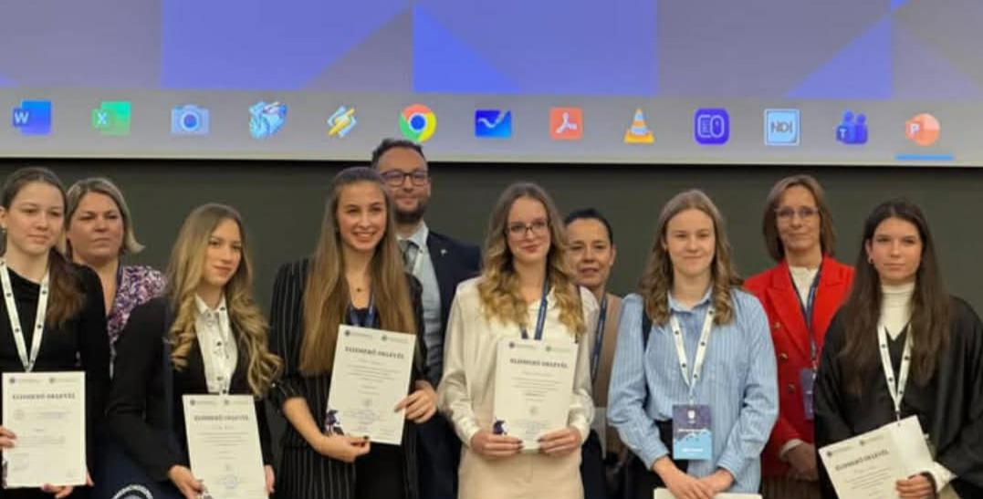 Tanulónknak ez is nagy élmény volt, hogy egyetemi hallgatók körében kellett megtartania 10 perces prezentációját, majd 5 percben azt meg is védeni a 4 tagból álló zsűri előtt. Miután mindenki előadott, a zsűri azonnal döntést hozott. Anna tanulmánya elkészítésével és előadásával különdíjban részesült.