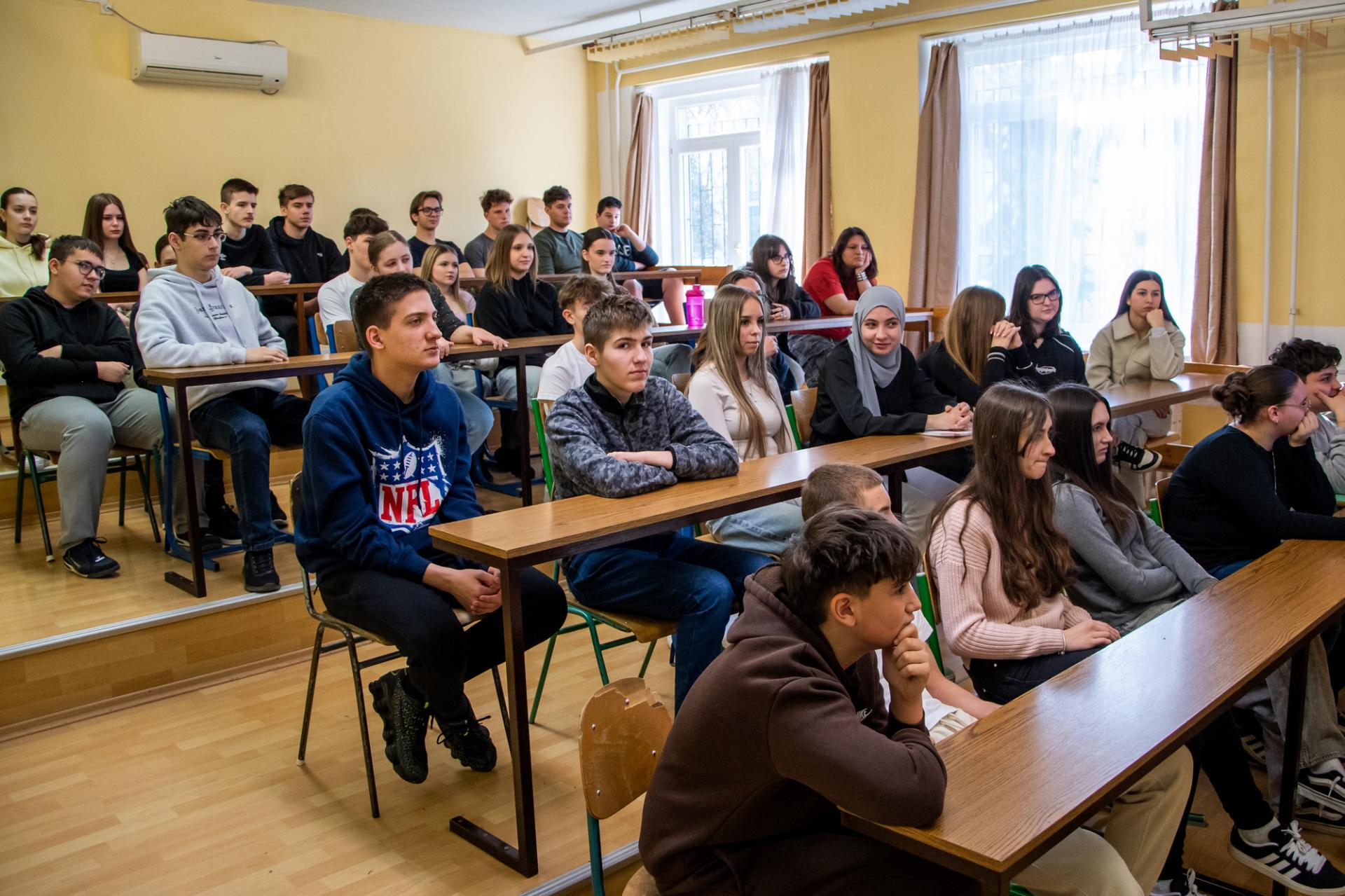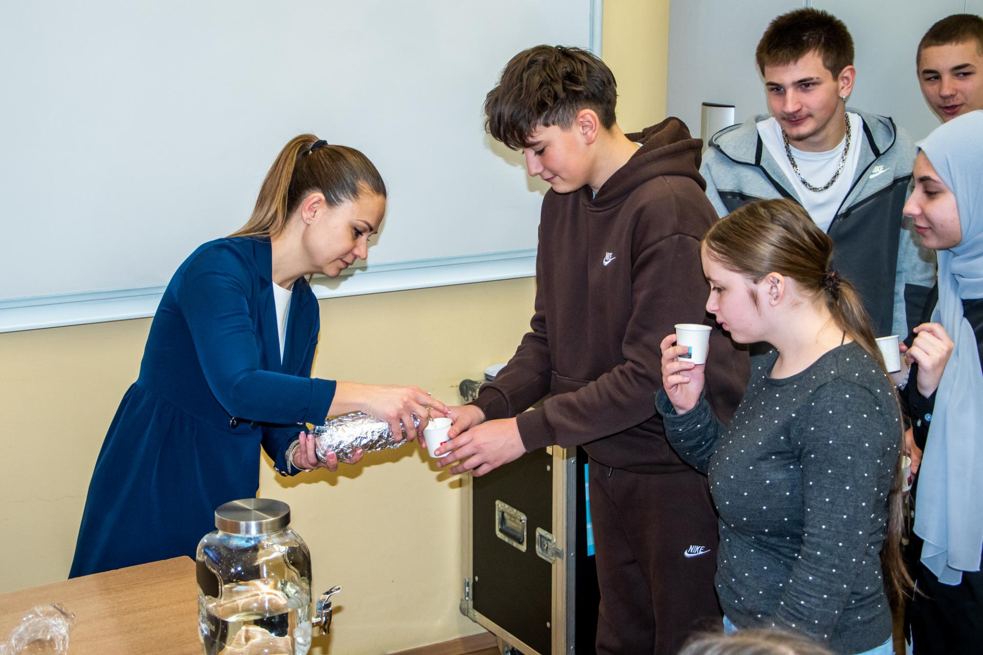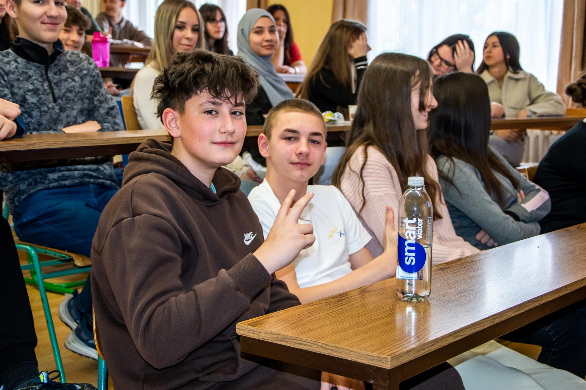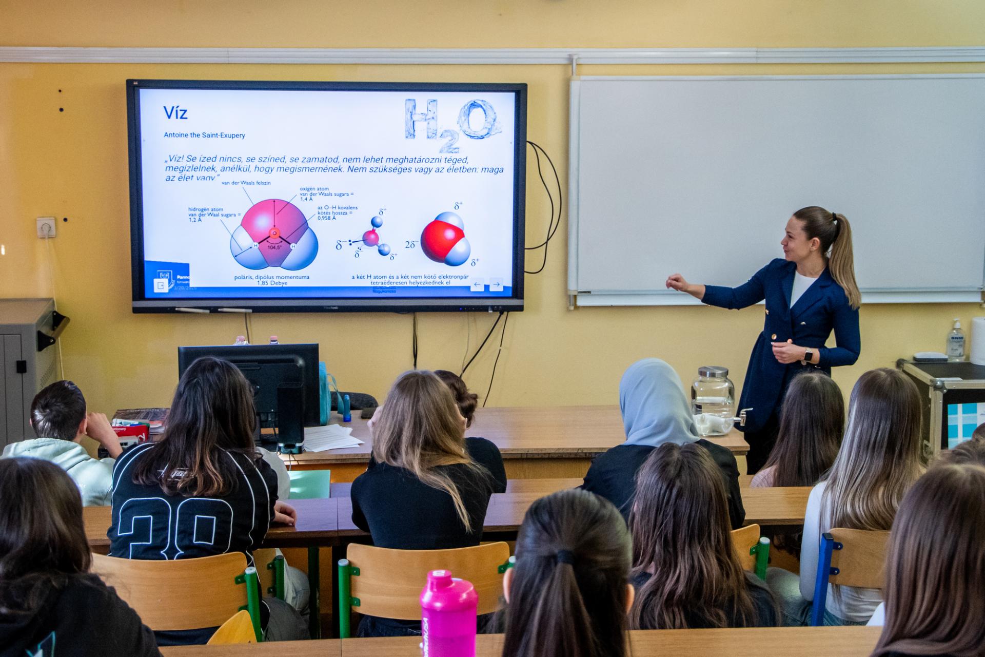 A közismereti előadóban Kovács Barbara, a Pannon Egyetem Körforgásos Gazdaság Egyetemi Központ munkatársa és iskolánk egykori diákja előadásában hallhattak tanulóink a világnap idei témájával kapcsolatos érdekes és olykor meghökkentő tényeket, valamint egy vízkostoláson is részt vehettek.