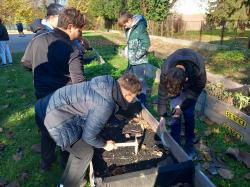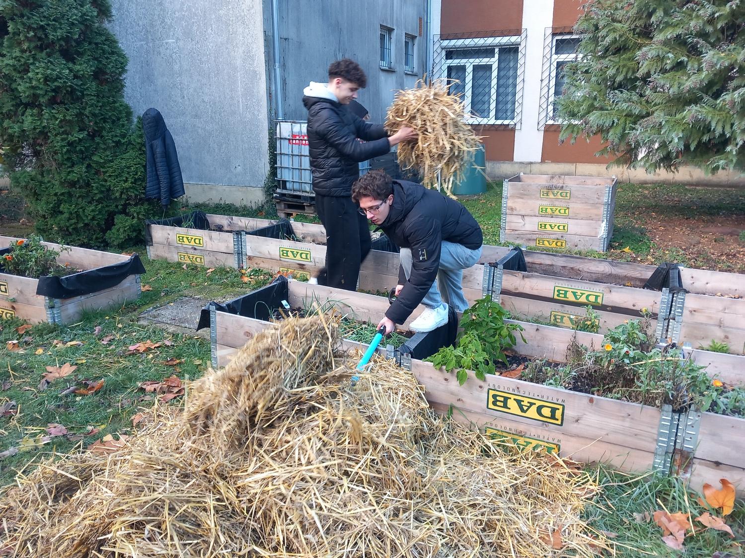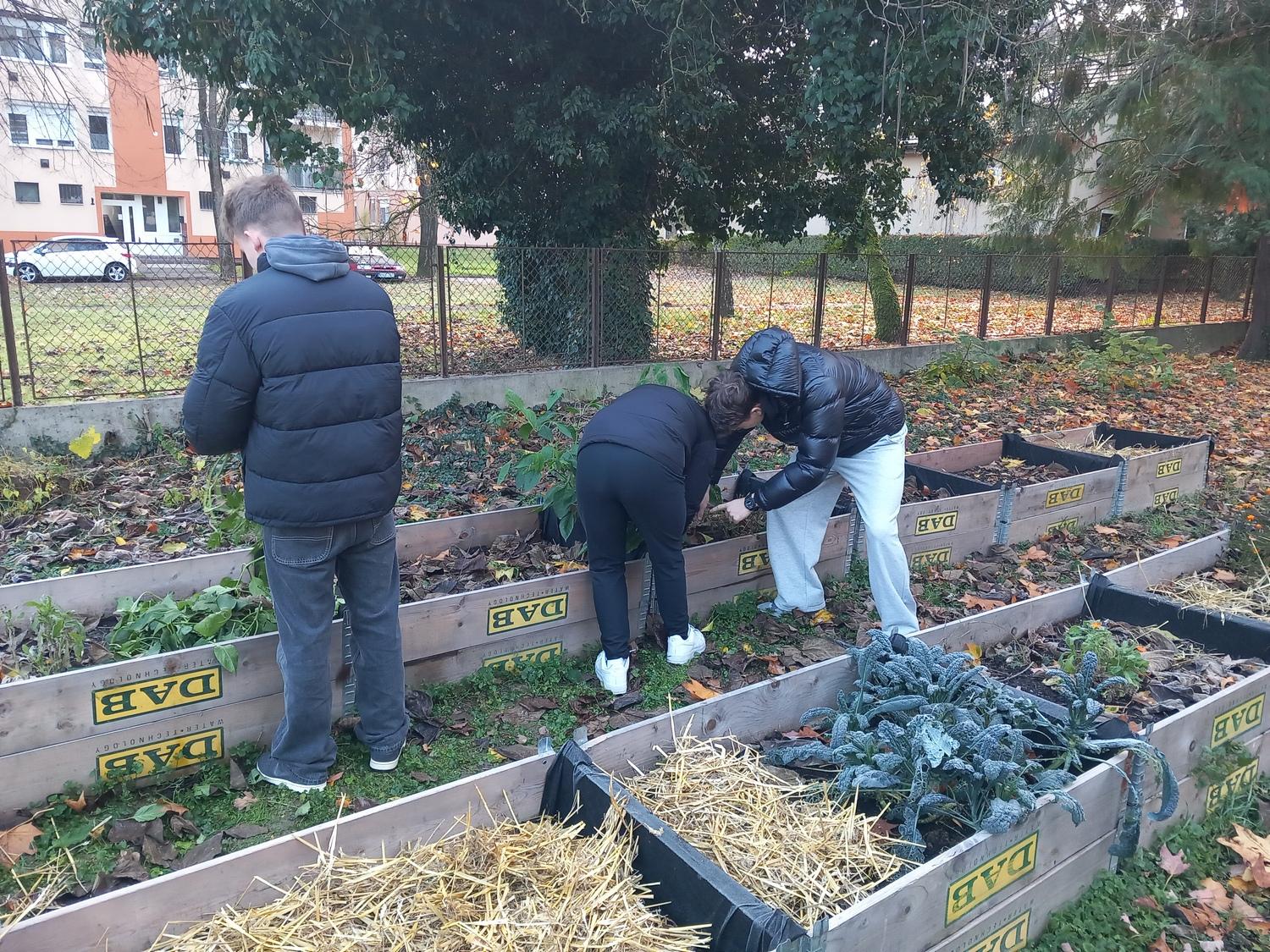 Elkezdődtek a munkálatok az iskolakertben, amelyet folyamatosan alakítunk a fenntarthatóság jegyében.
